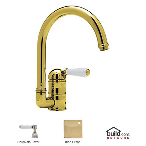 Rohl A3606LP-2 Country Kitchen Low Lead Kitchen Faucet with Porcelain Lever Handle, Inca Brass?Country Kitchen Low Lead Kitchen Faucet with Porcelain Lever Handle Born in the Piedmonte region of France, an area known for its rich tradition of cuisine and culture, the Country Kitchen collection is defined by exquisite design. Straight lines are paired with gentle curves and ribbing details to create a classic look that is as popular today as it was years ago. And with function set as the cornerstone of all Rohl products, rest assured that the beauty of the Country Kitchen collection does not overshadow its use. Smooth handle operation, lifetime ceramic disc valves, and a sturdy feel that only all-brass construction could allow are all defining features of the Country Kitchen collection. As one of Rohl's largest collections, you will find that there are a variety of bold styles and finishes to choose from. Rohl A3606LP-2 Features: All brass faucet body construction - weight: 8 lbs. Hand-machined from solid brass stock Industry leading, 1/4 turn lifetime ceramic disc valve Superior finishing process - chemical, scratch, and stain resistant Number of installation holes required: 1 Spout swivels to allow for unobstructed sink access High-arch gooseneck faucet spout 2.2 gallons-per-minute flow rate Installs onto decks up to 2-23/64" thick Porcelain lever handles included Overall height: 12-13/64" (measured from counter top to highest point of faucet) Spout height: 7-41/64" (measured from counter top to faucet outlet) Spout reach: 8-27/64" (measured from center of faucet base to center of faucet outlet) Low lead compliant - complies with federal and state regulations for lead content Designed for use with standard U.S