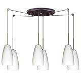 Besa Lighting 6 Light Chrissy Round Multi-Light PendantLight Bulb:(6)50w G16 Cand F Incand, Glass:Vanilla Matte, Finish:Satin Nickel Six light pendant luminaire with unlimited design potential. Create a custom arrangement or a cascading effect for small foyer or entry room lighting. Handcrafted European glass 10' Clear-coated SVT cords Includes six stemhooks Suitable for sloped ceilings Dimmable with standard incandescent dimmer Note: Halogen bulb(s) are included; incandescent bulb(s) are not.