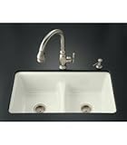 | ✚✚✚ Kohler K-5838-7U-NG Deerfield Undercounter Smart Divide Cast Iron Kitchen Sink Kohler Deerfield Smart Divide Undercounter Kitchen SinkKohler Deerfield Collection33" x 22" x 9" Undercounter Mount Double (Equal) Comparment Sink7-Hole Faucet Drilling (Oversized Faucet Holes)Includes Undermount Installation KitRecommended Accessories: K-9000 (P-Trap)Available Accessories: K-6624 (Cutting Board), K-2989, K-5917 or K-6636 (Countertop Cutting Board), K-6039 (Bottom Basin Rack), K-8801, K-8803 w/ K-8804, K-8816 or K-8817 Sink Strainer