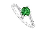 Emerald and Diamond Engagement Ring : 14K White Gold - 0.50 CT TGW Size 5.5