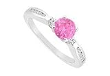 Pink Sapphire and Diamond Engagement Ring : 14K White Gold - 0.75 CT TGW Size 10A round pink sapphire is prong-set in the center and is flanked by two round diamonds. Channel-set small diamonds on both sides. This engagement ring is made in 14K white gold has a total weight (TGW) 0.75 carat and also available matching wedding band model no. W3065BW14D...Please note: Normal shipping time is for the average ring size (Women - size 6, Men - size 10). If you order a different size, the ring will be custom made to that size and will take longer for shipping.......Please note: Normal shipping time is for the average ring size (Women - size 6, Men - size 10). If you order a different size, the ring will be custom made to that size and will take longer for shipping...