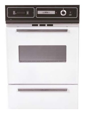 Summit Refrigeration STM7212KW NG Spark Ignition Gas Walloven, Lower Broiler Compartment, Bisque, NG, Each?Bisque gas walloven with electronic ignition, digital clock/timer, and oven window for cutouts 22.38 wide by 34.13 in high, 34.5 H, 24 W, 24 in D