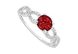 | ✚✚✚ Ruby and Diamond Engagement Ring : 14K White Gold - 0.50 CT TGW Size 10 Center set atop brilliant-cut round ruby and is accented by smaller round diamonds stylishly in a crossover design on both side. This beautiful engagement ring is made in 14K white gold and has a total weight (TGW) of 0.50 carat and also available matching wedding band model no. W3040BW14D...Please note: Normal shipping time is for the average ring size (Women - size 6, Men - size 10). If you order a different size, the ring will be custom made to that size and will take longer for shipping.......Please note: Normal shipping time is for the average ring size (Women - size 6, Men - size 10). If you order a different size, the ring will be custom made to that size and will take longer for shipping...