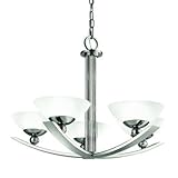 | ✚✚✚ Palla 5 Light Chandelier Size: Small 42001PN Size: Small Features: -Five light chandelier.-Body material: Steel and glass.-Diffuser description: White etched.-UL CSA listed. Includes: -Accommodates (5) 60W incandescent candelabra base bulb (included). Options: -Available in several sizes. Color/Finish: -Polished nickel finish. Dimensions: -Small Chandelier dimensions: 19.5'' H x 25.5'' W.-Large Chandelier dimensions: 25'' H x 31.5'' W. Collection: -Palla Collection.